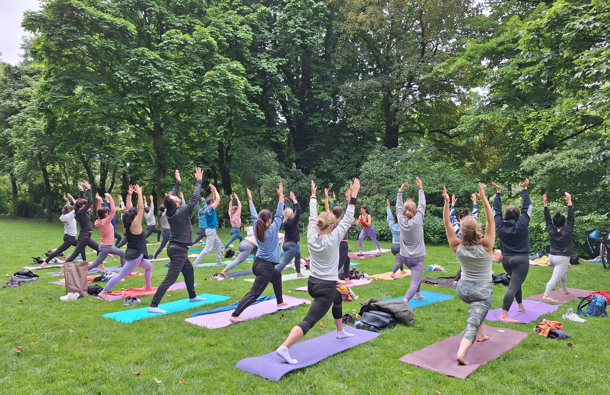 Yoga for Good is an outdoor yoga experience in the park, bringing together movement, community, and purpose — all in support of breast cancer awareness and care.
